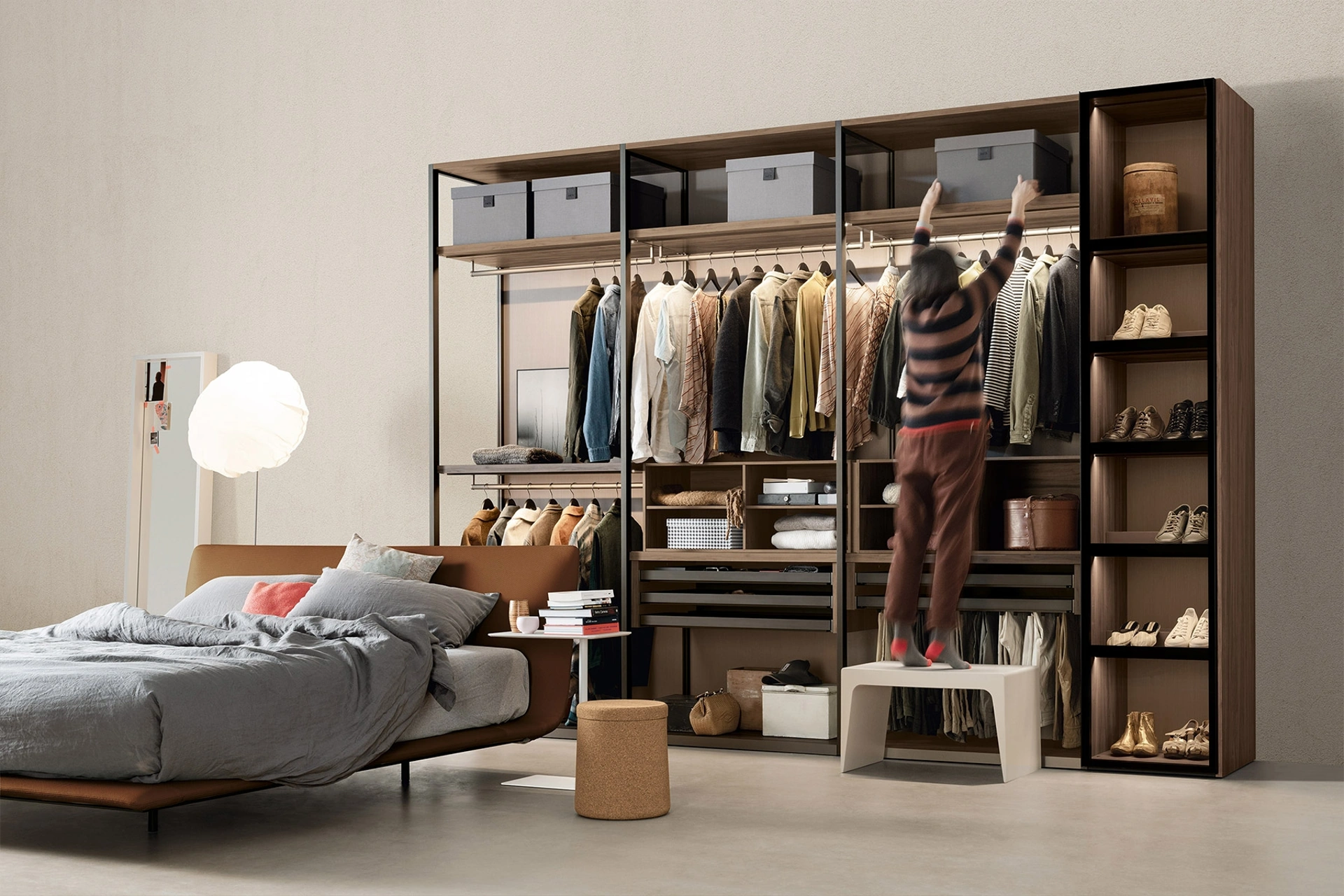 Cabina Armadio Aria di Kristalia: compila il form per ricevere informazioni di ogni sorta e consigli per allestire la camera che hai sempre sognato. Gli Armadi cabine armadio con ante battenti sono componenti essenziali nella camera da letto, per renderla ben arredata, pratica e completa di tutto. Contattaci e ottieni informazioni sulla nostra linea di Arredamento Casa: avrai la possibilità di completare la zona del riposo utilizzando una ricca disponibilità di mobili contenitori moderni, come l'armadio in melaminico nella fotografia.