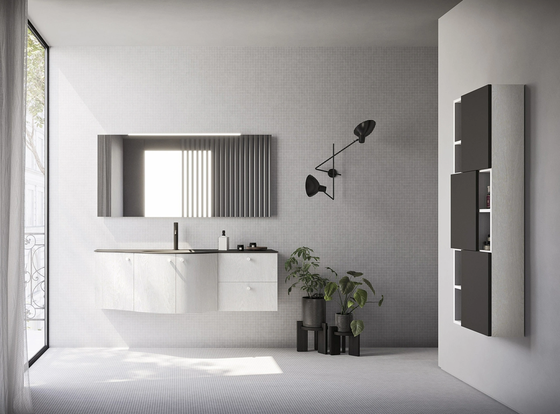 L’Arredo Bagno moderno dei principali brand garantisce oggigiorno composizioni per progettare ambienti di grande design e arredati al meglio. Nel nostro showroom scoprirai diverse soluzioni di composizioni di Arbi per impreziosire lo spazio di casa dedicato alla routine di cura personale. Le proposte del noto brand sono sempre costruite in materiali di pregio, capaci di resistere negli anni all'azione di umidità e agenti pulenti. In showroom troverai non solo wc e bidet, ma anche tutti gli altri accessori integrati nel concept per la sala da bagno: scopri le più originali proposte di mobili bagno sospesi. Il modello di Mobile da Bagno Ho-me plus curvo 57 di Arbi in melaminico ultima il locale coniugando ottimamente doti di raffinatezza con ergonomia e sicurezza.