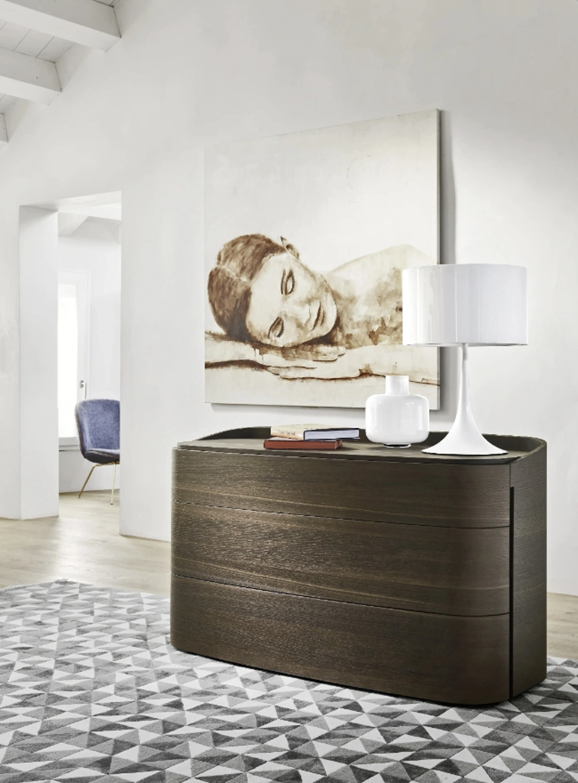 I Comodini sono arredamenti capaci di completare la camera da letto fornendo un'area di appoggio per certo utile e poliedrico. Ti domandi in che modo abbinare letti, armadi e comodini? Con il modello di Sangiacomo mostrato in foto avrai un mobile adatto per un luogo dai richiami design.