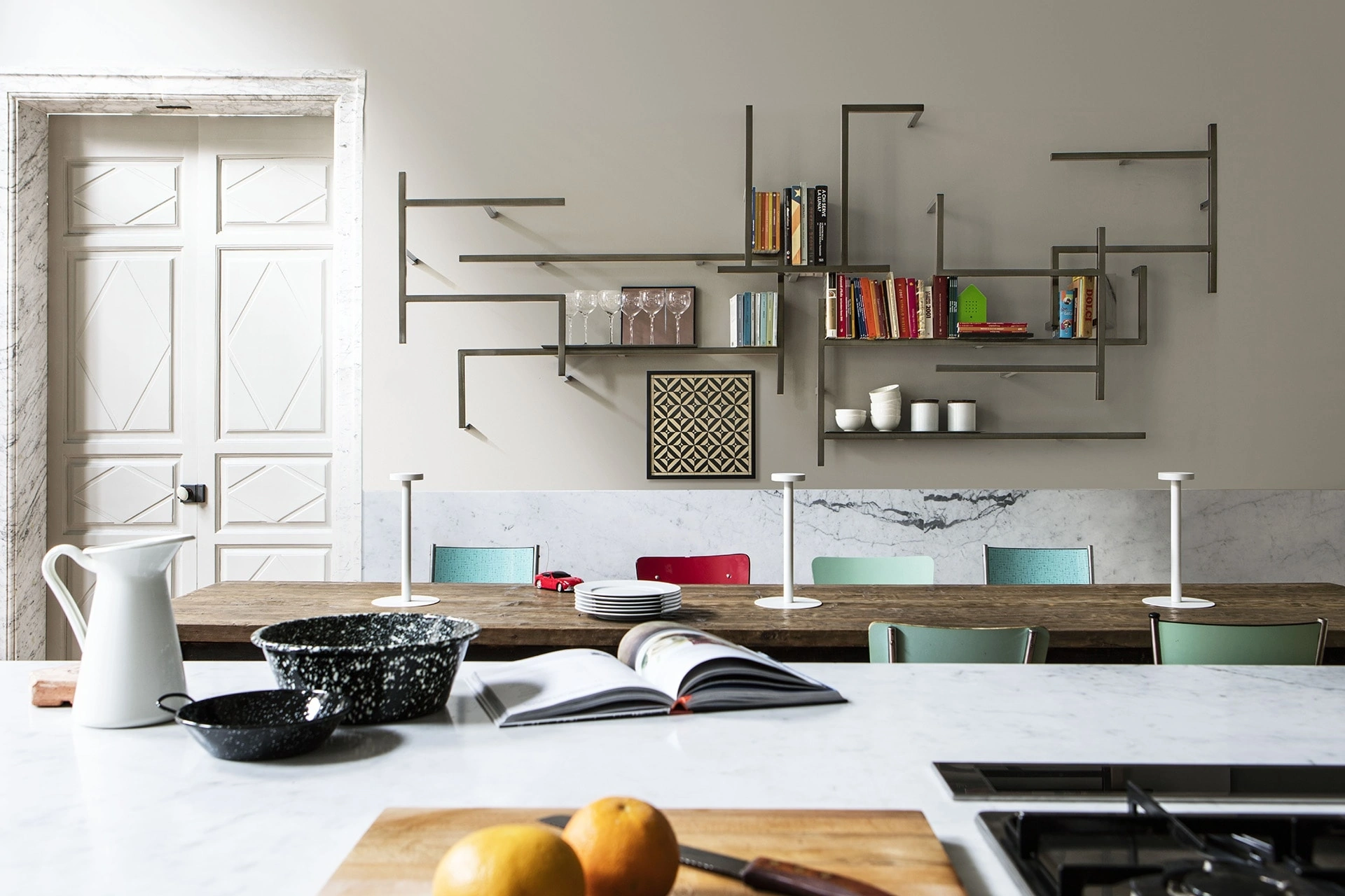 La Libreria in ferro Antologia di Mogg nella fotografia, nella variante in metallo, è davvero funzionale e versatile, robusta e durevole, nonché caratterizzabile seguendo le più particolari problematiche abitative. Le Librerie a muro Mogg sono disponibili in varie forme: angolari, in linea, sospese e realizzabili su misura per te con differenti accessori, mensole e vani. Le Librerie design sono sempre molto amate per organizzare il soggiorno e i muri, unendo alla perfezione doti di funzionalità e stile.