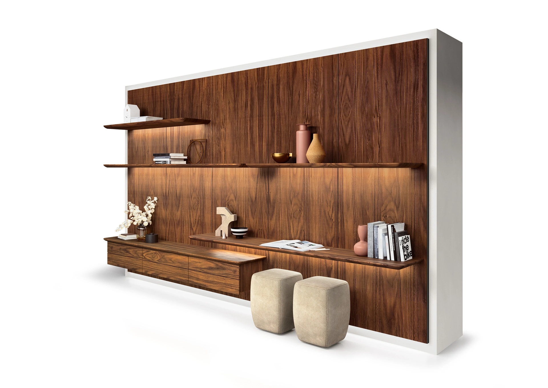 Scopri le più originali soluzioni salvaspazio, come ilmobile soggiorno nell'immagine in legno, e dai vita al living dinamico e operativo che hai sempre voluto. Contattando i nostri arredatori potrai avere informazioni di ogni tipo sulla Libreria Modula di Riva1920 qui presente. Arricchisci i tuoi spazi con i mobili e oggetti accessori Riva1920: in negozio ti aspettano prodotti funzionali e di grande design, sempre in materiali pregiati e di grande personalità. Il noto e conosciuto marchio produce Librerie a muro moderne in un'infinità di conformazioni, misure, finiture e cromie per assicurare la massima poliedricità.