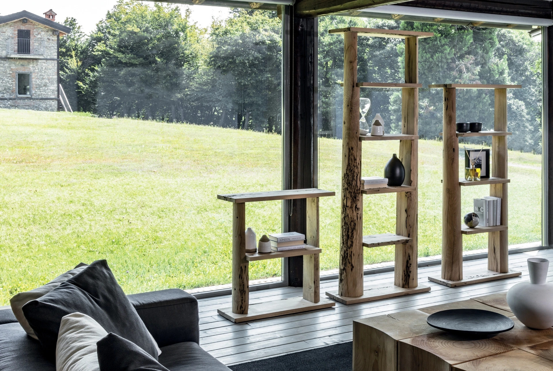 Contattaci per info e preventivi sul modello presente in foto: se vuoi completare stanze design, allora questa libreria dalle forme decise fa per te. Il soggiorno è, per eccellenza, la zona della casa in cui ci si riposa ogni giorno, conversando con amici e parenti, riposando da soli o guardando la televisione. Le Librerie divisorie Riva1920 sono disponibili in varie conformazioni: angolari, lineari, sospese e realizzabili su misura con diversi accessori, mensole e vani. Le Librerie design sono sempre tanto apprezzate per predisporre il soggiorno e le pareti, mixando alla perfezione doti di funzionalità e stile.