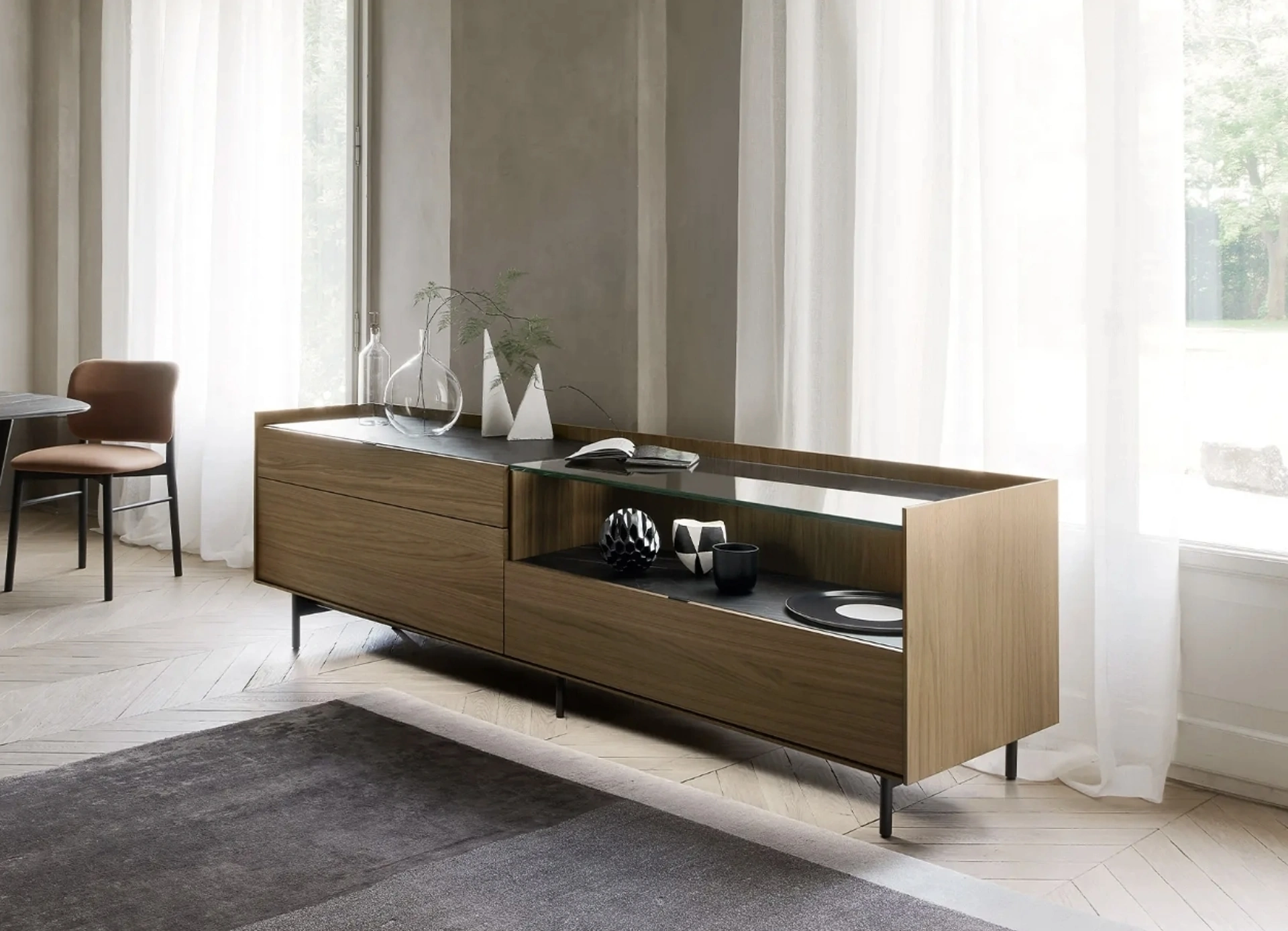 Unmobile soggiorno del genere ottimizza in modo strategico i tuoi locali arricchendone l'estetica: contattaci e scopri come dare vita a un'atmosfera di grande personalità con mobili ed elementi accessori per il living. Carattere accattivante e uno stile unico conquisteranno anche te: la Madia Cabaret 01 di Sangiacomo è una tra le soluzioni più originali sul mercato. Le Madie, come il modello in legno visibile in foto, sono in grado di impreziosire gli ambienti domestici per merito della qualità di rivestimenti e finiture. Il brand produttore progetta Arredamento Casa di grande valore: ti aspettiamo nel nostro punto vendita per farti vedere dal vivo le composizioni più originali.