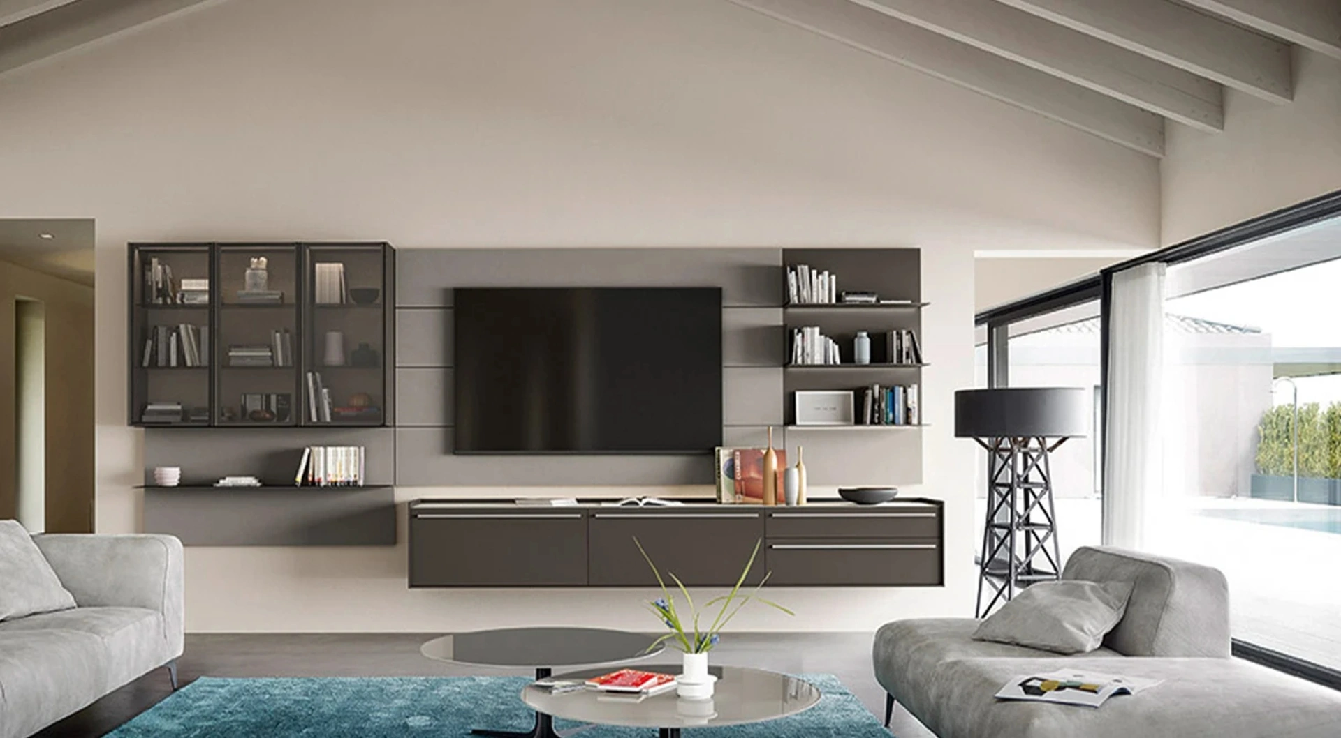 Questa parete attrezzata è una delle soluzioni della firma e ti permetterà di ammobiliare la zona giorno secondo le più particolari problematiche abitative. Attraverso un gioco dinamico di accostamenti fra componenti a giorno o vani chiusi, le Pareti Attrezzate moderne arredano il living usufruendo al meglio di ogni spazio. Per informazioni e preventivi sulla Parete Attrezzata Cabaret One 02 di Sangiacomo nella fotografia contattaci! Il modello proposto è realizzato in laccato opaco, ma grazie ad una vasta scelta di finiture, tonalità e conformazioni, potrà adattarsi a stili di ogni genere.