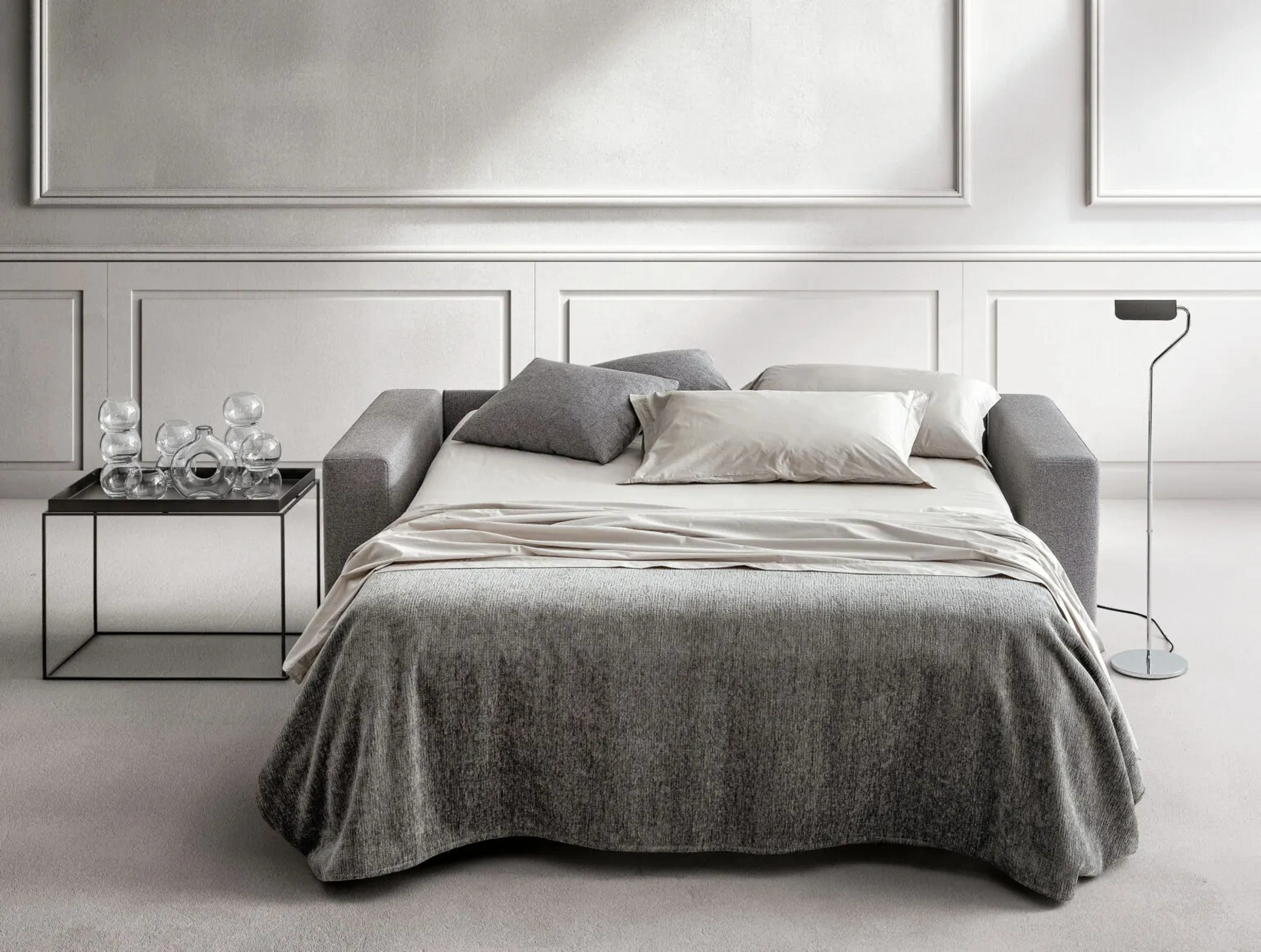 I nostri Salotti sono pensati per essere abbinati a accessori di ogni genere, come tavolini, abat jour e piantane oppure in combinazione con ulteriori divani in tessuto. Se desideri divani e poltrone con letto come il modello nell'immagine, caratterizzato dai volumi che invitano a trascorrere i tuoi momenti di riposo. La collezione di divani del brand in questione propone svariate possibilità peculiari per impreziosire il living all'insegna di funzionalità, comfort e stile. Divano Letto Axel di Samoa: ricrea uno spazio familiare e confortevole in spazi moderni di grande personalità.