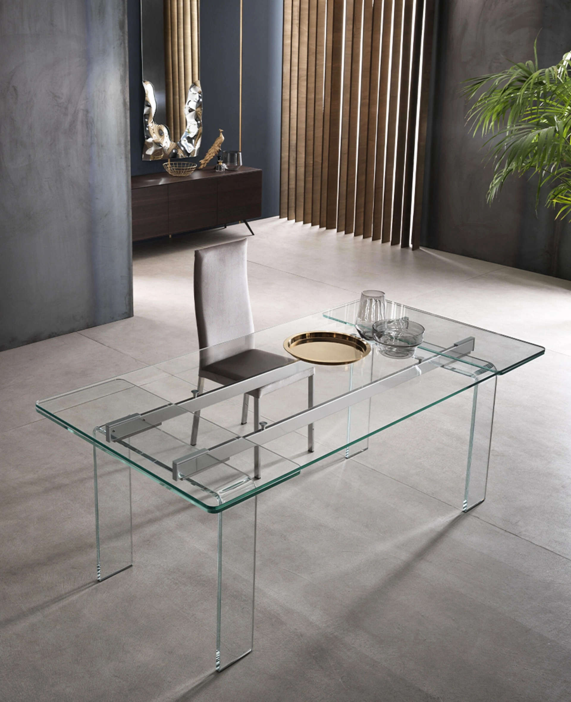 Tavolo allungabile Plano di Riflessi: con questo modello potrai arricchire spazi moderni garantendoti componibilità su misura e la massima progettualità dei tavoli allungabili. Contattaci per info e preventivi o guarda nel nostro punto vendita le altre più belle proposte da pranzo in vetro di Riflessi, esempio di tutta la qualità assicurata dal marchio. In negozio troverai un ricco catalogo di mobili e complementi in vetro dei migliori brand, ideali per ultimare i tuoi spazi.