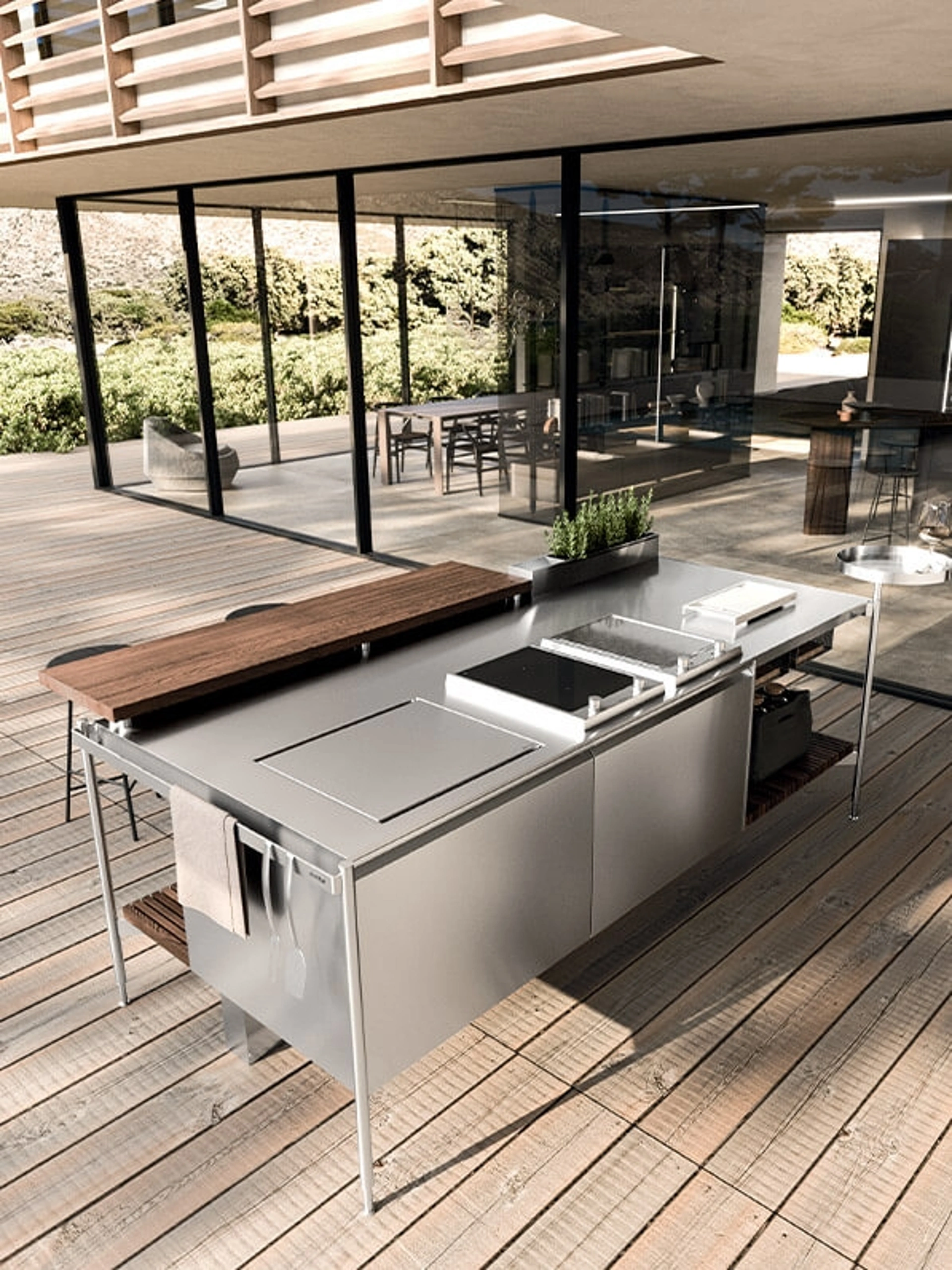 Questa proposta è costruita in acciaio, ma è possibile dar vita ad uno spazio straordinario e personalizzato per merito della sua modularità e caratterizzazione. Se la caratterizzazione dell'arredamento in chiave design è un elemento di rilievo nel concept d’arredo dei tuoi interni, il suggerimento è quello di scegliere le Cucine monoblocco salvaspazio della firma Arrital, come il modello qui disponibile. Acquistando la Cucina Design outdoor Solaria Isola Monoblocco di Arrital sarai in grado di adattare ogni parte del modello ai tuoi ambienti, creando una composizione unica con particolari di tendenza.